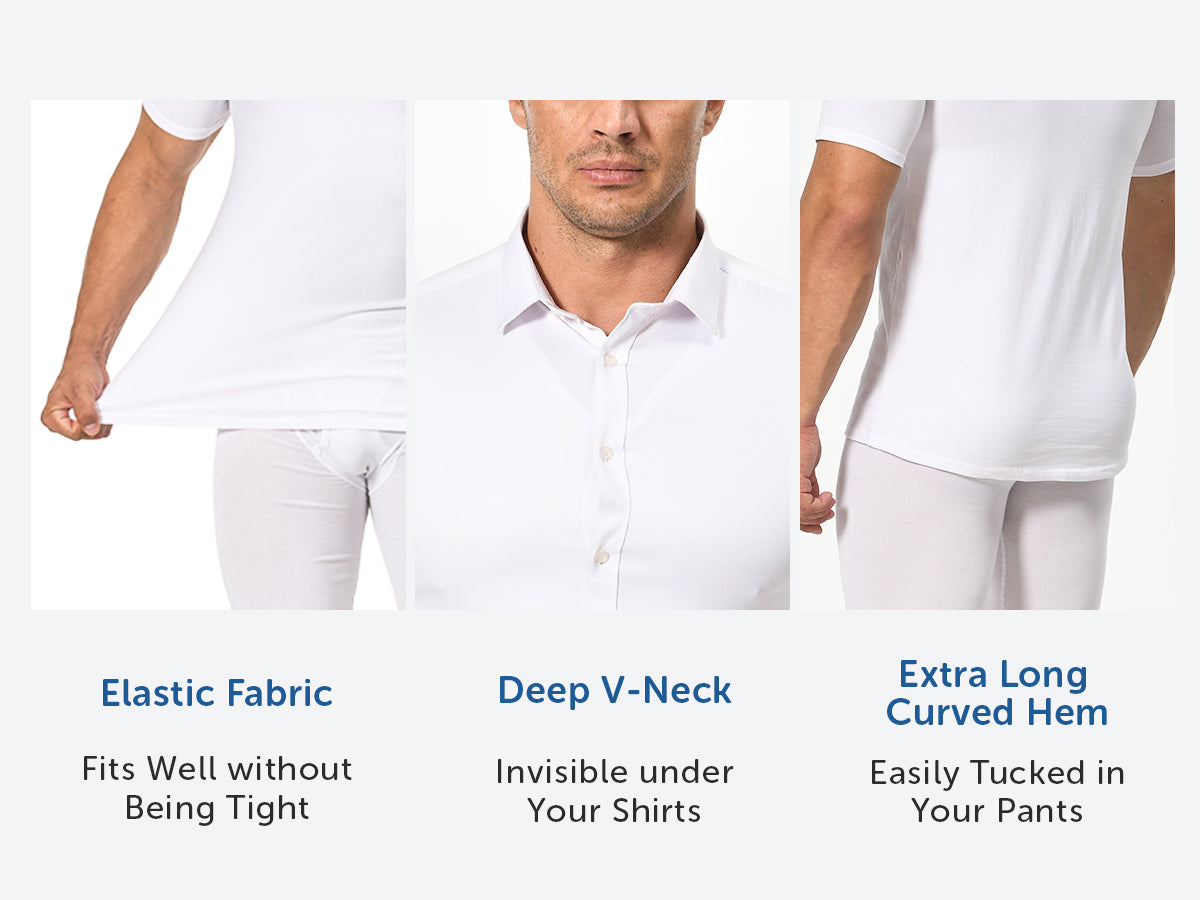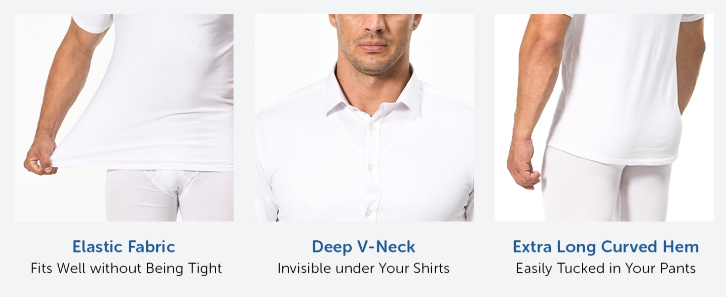 • V-Neck, invisible under shirts, sweatershirts etc.